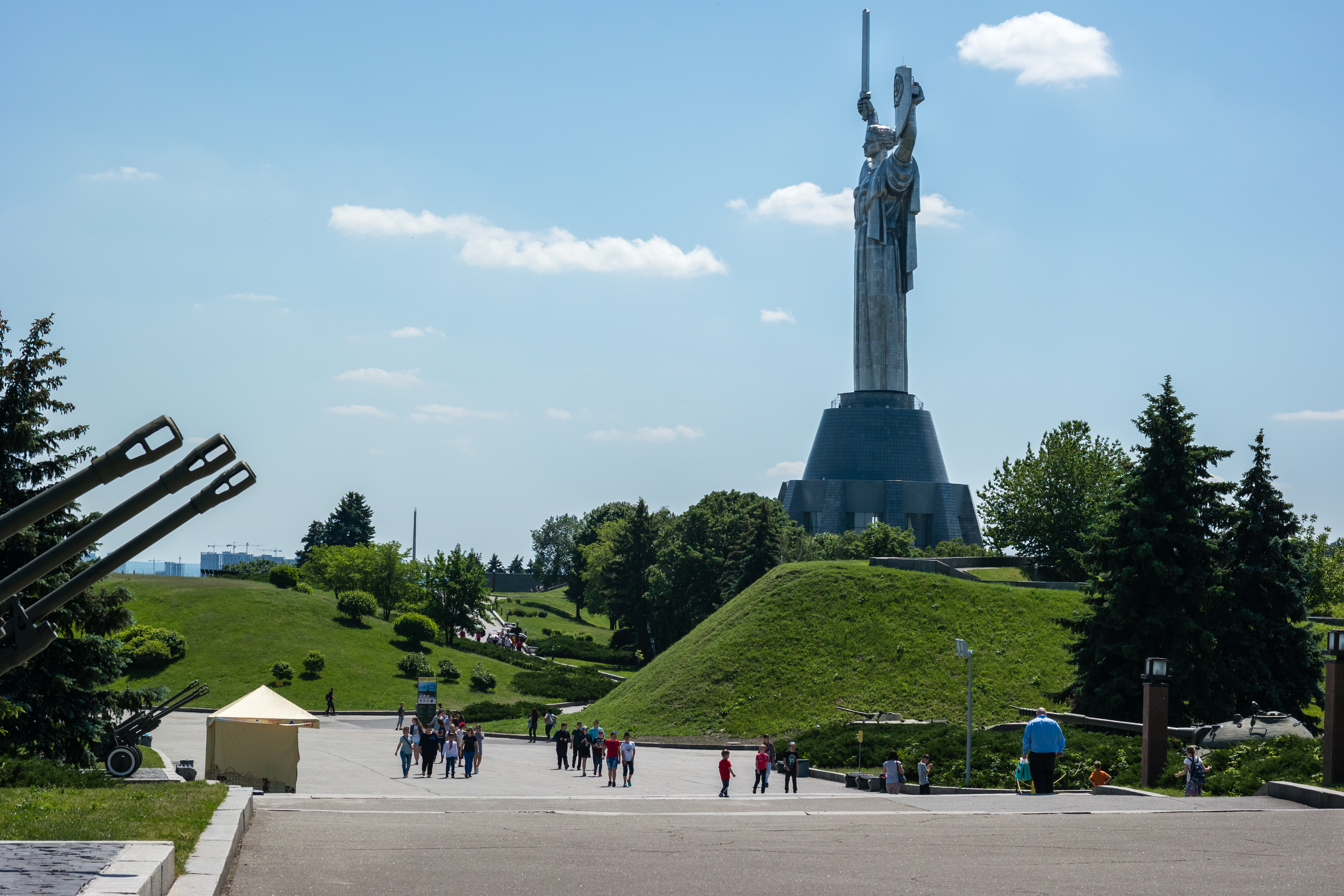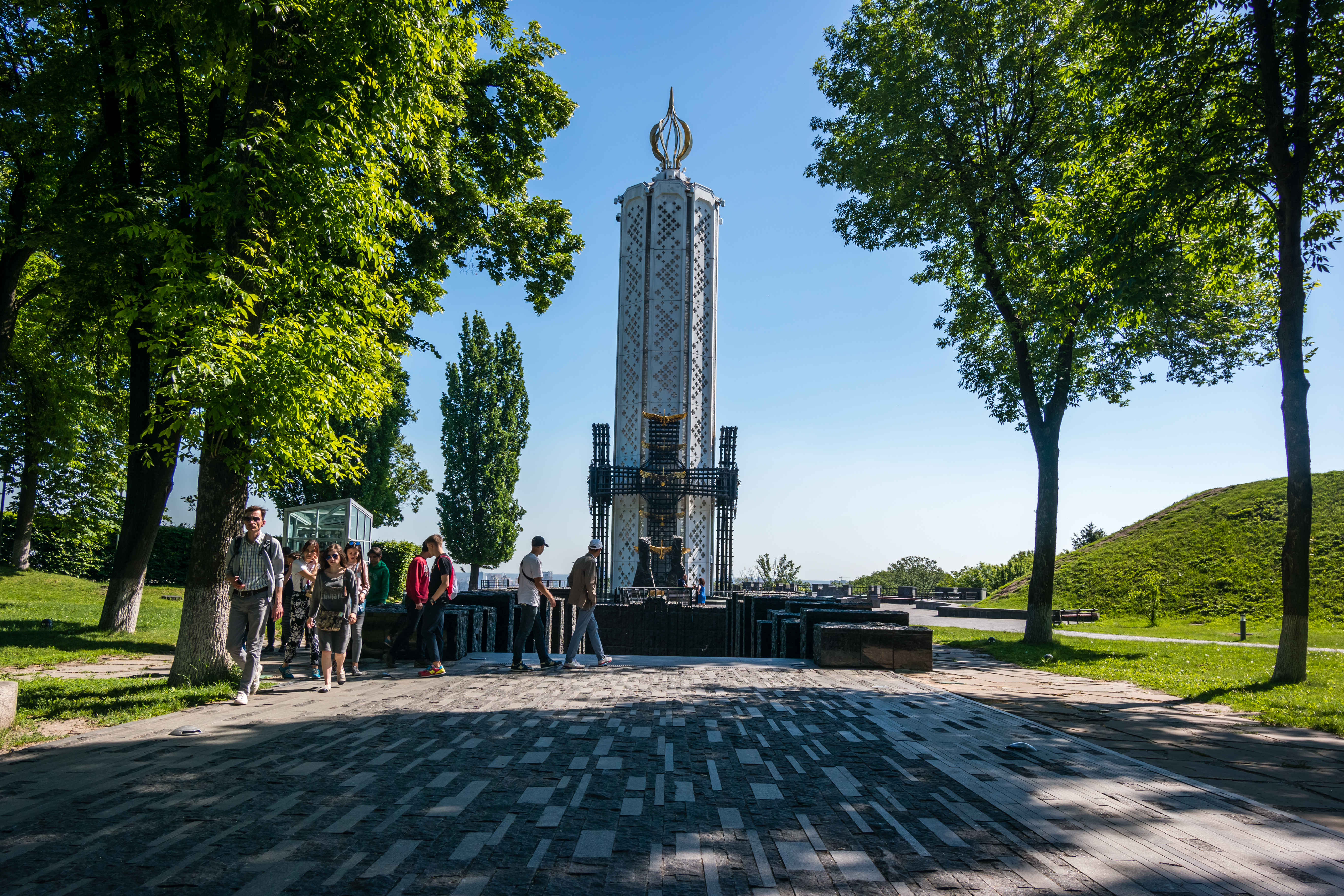 Στην όχθη του ποταμού που βρίσκεται το κέντρο τώρα, η ευρύτερη περιοχή από το ατσάλινο άγαλμα της Μητέρας Πατρίδας (ψηλότερο ακόμα κι από το Αγαλμα της Ελευθερίας στη Νέα Υόρκη), μέχρι και την Αψίδα της Φιλίας των Λαών, ένα από τα μνημεία της ύστερης κομμουνιστικής περιόδου, είναι ιδανική για περπάτημα και ποδηλασία. Το Πάρκο Mariyinsky στα μέσα της διαδρομής είναι κατ’ όνομα πάρκο. Πρόκειται στην ουσία για άλσος, μια καταπράσινη όαση δίπλα στο κέντρο της πόλης, που σε αναγκάζει να νοιώθεις θλίψη για την αντίστοιχη εικόνα των περισσοτέρων ελληνικών πόλεων όπου το τσιμέντο κυριαρχεί.