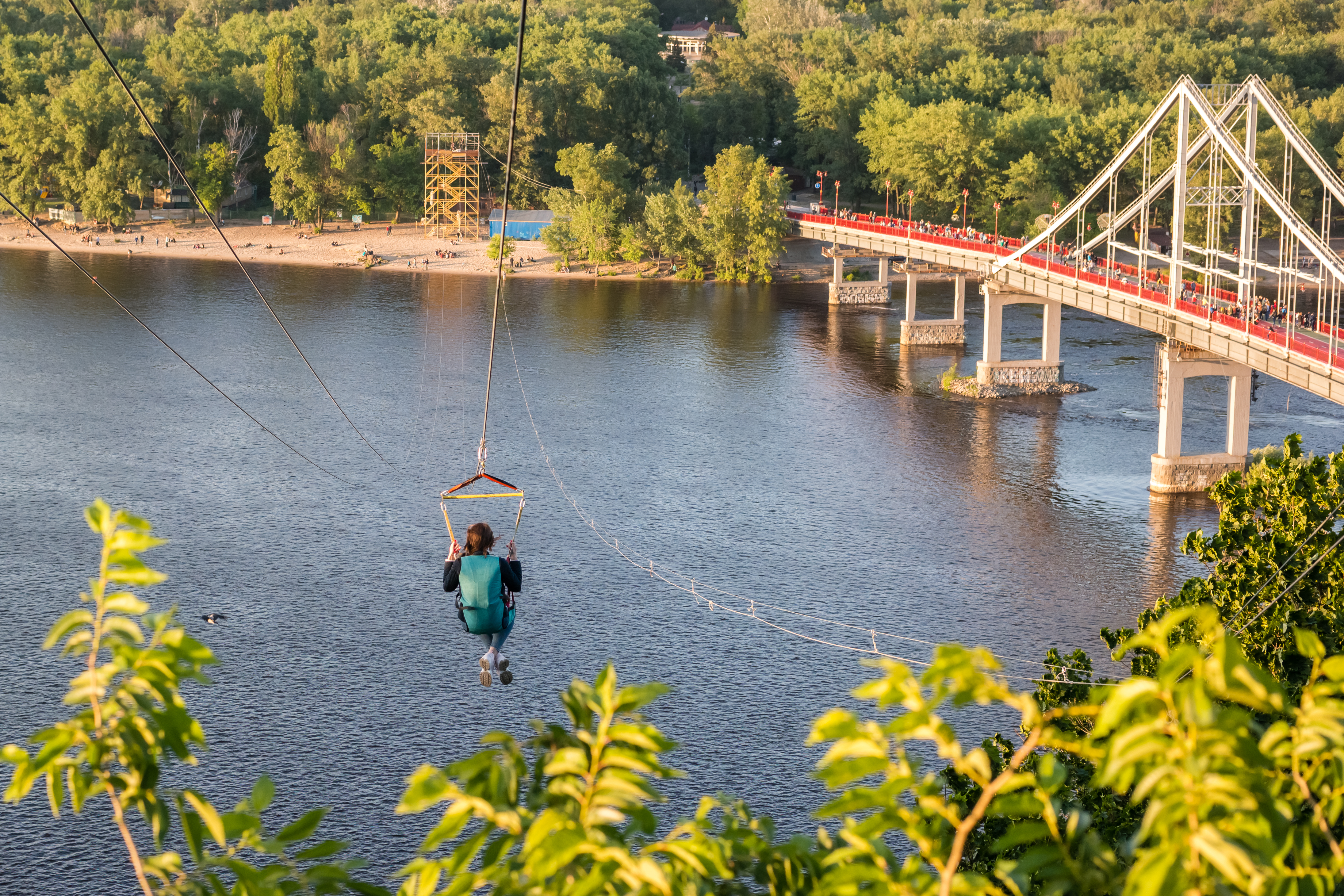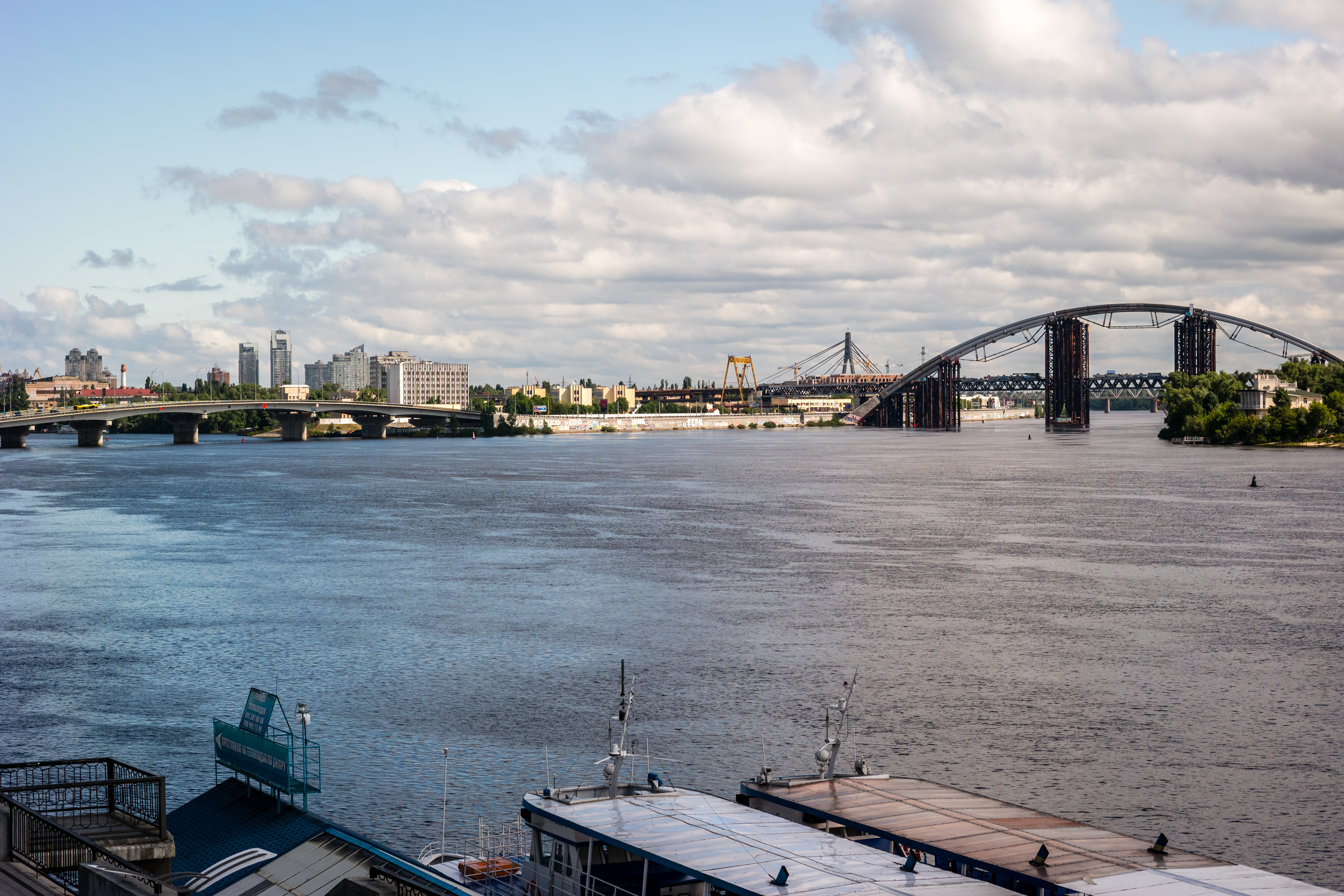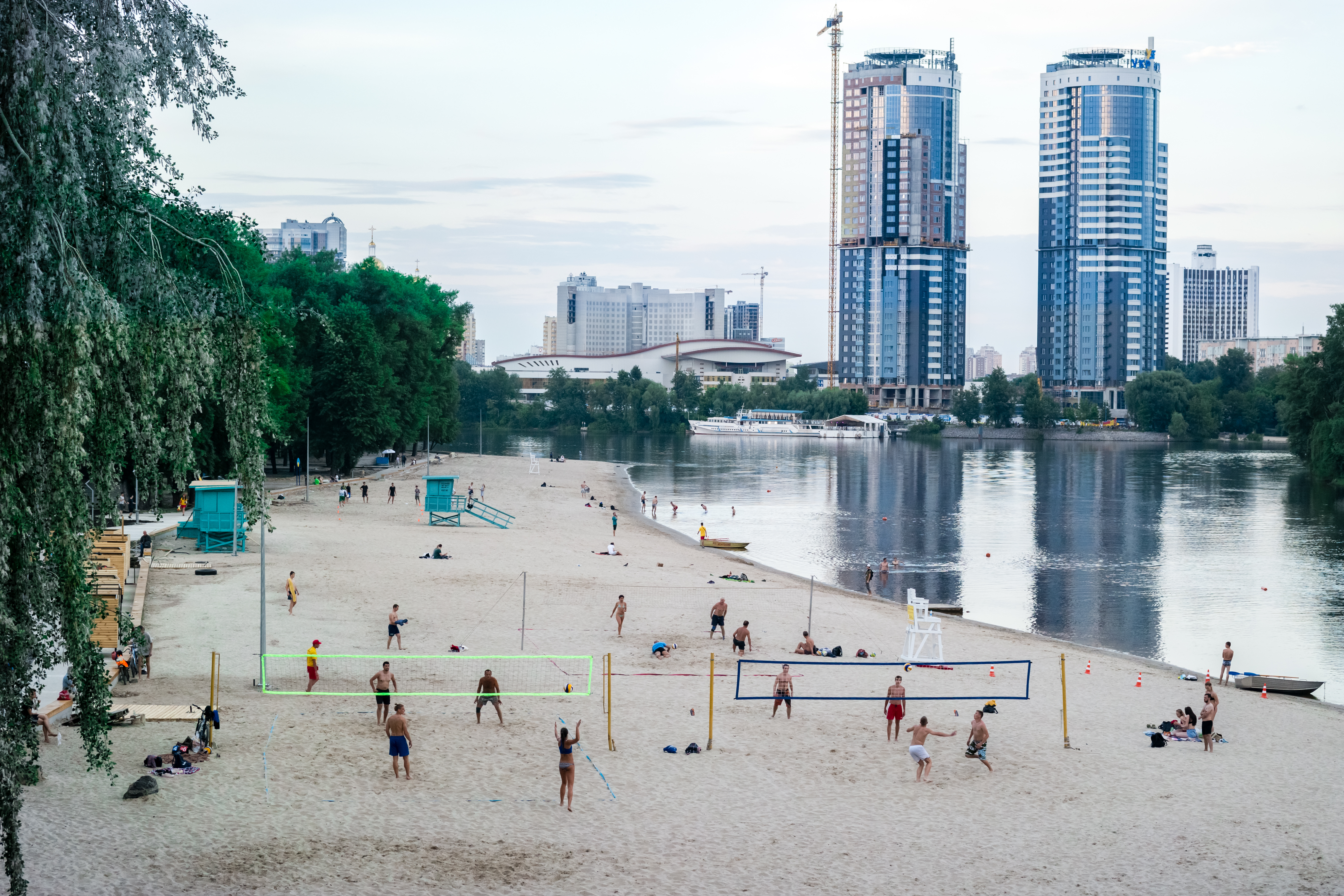Εκτός του κτιριακού συνόλου, εντύπωση κάνει το ποτάμι που διασχίζει την πόλη, ο Δνείπερος (Dnieper), ο τρίτος μεγαλύτερος ποταμός στην Ευρώπη. Μέσα σε λίγα μόνο λεπτά (δύο στάσεις με το μετρό) βρίσκεσαι στην απέναντι όχθη, μακριά από τη βοή του κέντρου. Με το που κατεβαίνεις από την αποβάθρα, νομίζεις ότι βρίσκεσαι σε ένα διαφορετικό κόσμο. Σε ένα ήσυχο περιβάλλον, με μεγάλες εκτάσεις πρασίνου (χαρακτηριστικό το πάρκο Hydropark) που καταλήγουν σε αμμουδιά (ναι αμμουδιά!), όπου οι ντόπιοι βουτάνε για μπάνιο. Στο μικρό νησάκι (Trukhaniv) που υπάρχει στη μέση του ποταμού υπάρχουν γήπεδα beach volley, μέχρι και οργανωμένο υπαίθριο γυμναστήριο. Εάν σκεφτείς βέβαια ότι «σαν τη Χαλκιδική δεν έχει», το περιβάλλον σου φαίνεται κάτι παραπάνω από σουρεαλιστικό.