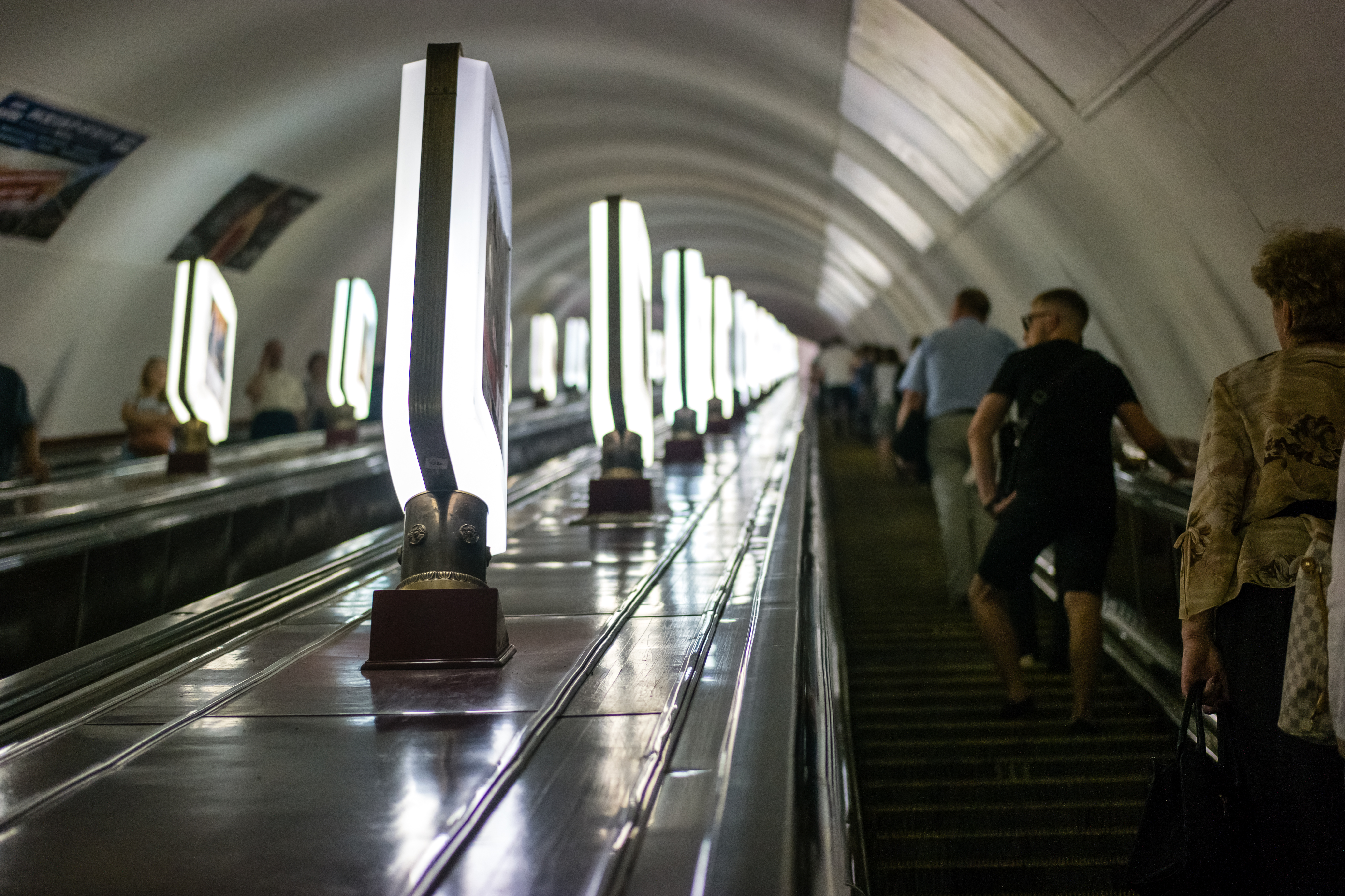 Μιας και ανέφερα το μετρό, οι περισσότεροι σταθμοί του, όπως συνέβαινε στην πρώην Σοβιετική Ένωση, βρίσκονται αρκετά μέτρα κάτω από τη γη. Η βαθύτερη αποβάθρα βρίσκεται στο σταθμό Arsenalna, 105,5 μέτρα υπογείως. Όταν στέκεσαι στην αρχή της σκάλας, δεν μπορείς να δεις πού καταλήγει. Η διαδρομή από την αρχή μέχρι το τέλος γίνεται σε τέτοιο χρόνο, που παρατήρησα ότι πολλοί διαβάζουν το βιβλίο τους ή την εφημερίδα τους!