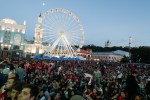Από την Πέμπτη και μετά (ο Τελικός ήταν το Σάββατο) το Κίεβο πήρε χρώμα ποδοσφαιρικό και άκρως πολυπολιτισμικό. Σημείο αναφοράς ήταν η κεντρική αρτηρία της πόλης, η οδός Khreshchatyk, όπου στήθηκε το Champions League Festival, ένα μίνι-χωριό όπου υπήρχε γήπεδο 5×5, μπουτίκ, μουσική σκηνή, αίθουσες gallery με την ιστορία του θεσμού, παιχνίδια δρόμου και ξύλινα σπιτάκια που σέρβιραν «βρώμικο» και μπύρα. Στη μέση του Φεστιβάλ δέσποζε μέχρι το Σάββατο πρωί το τρόπαιο, η αναμονή όμως στην ουρά για να φωτογραφηθείς δίπλα του ξεπερνούσε τις δύο ώρες. Κάπου εκεί, την πρώτη μέρα του Φεστιβάλ, άκουσα και ελληνικά, αφού πέτυχα τα μέλη του συνεργείου του OTE TV που είχε έρθει για τη μετάδοση και τα οποία δέχτηκαν με χαρά να βγάλουμε μια φωτογραφία.
