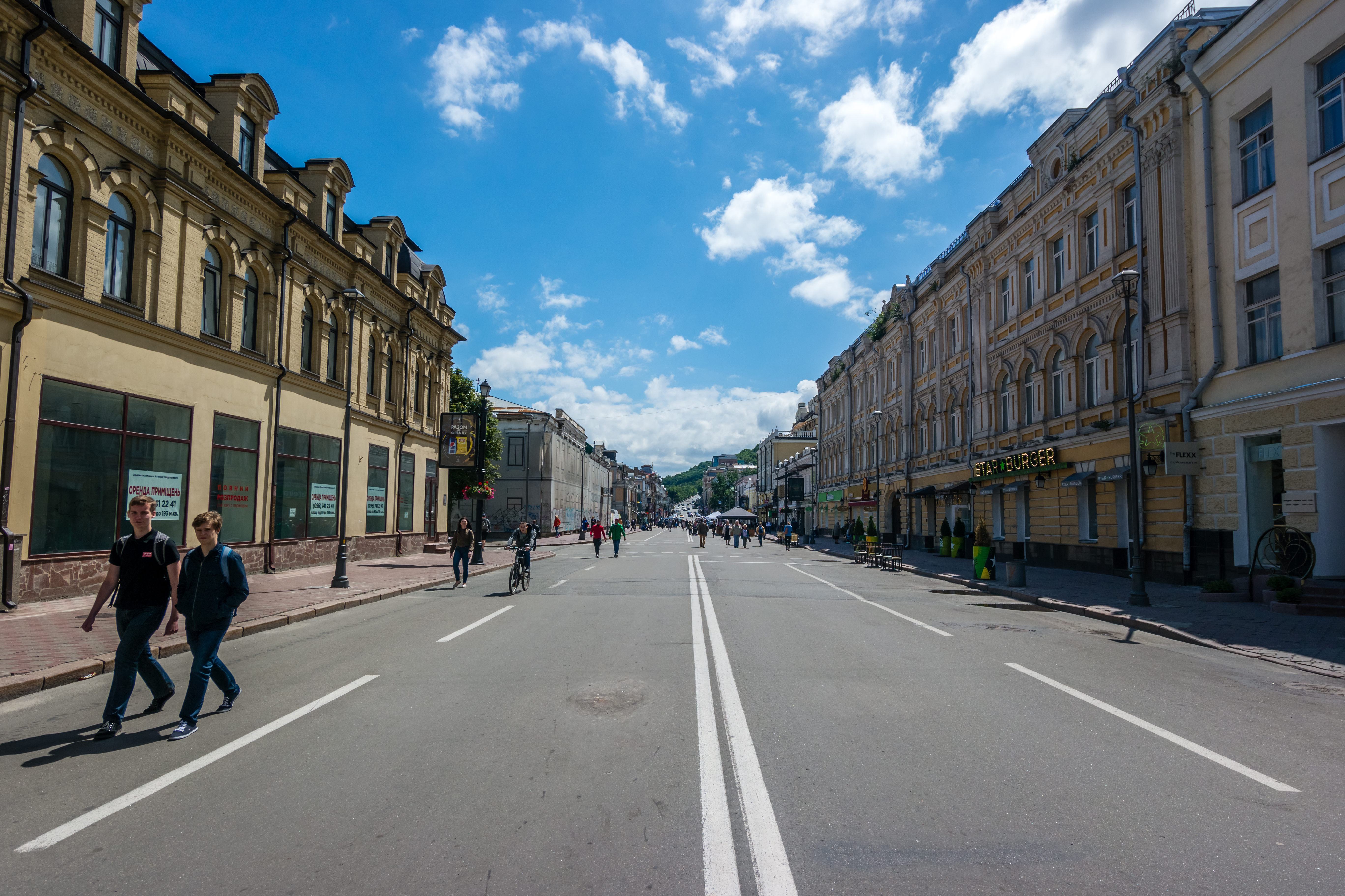Συνεχίζοντας θα συναντήσει κανείς τη Γέφυρα των Ερωτευμένων (Bridge of Lovers), την περιοχή Andriyivski Uzviz με τα πέτρινα δρομάκια και πλήθος πλανόδιων καλλιτεχνών και πάγκων με δώρα και σουβενίρ (θυμίζει κάτι από Μονμάρτη) και θα φτάσει στο Podil. Η περιοχή αυτή ήταν γειτονιά ψαράδων και χειροτεχνών και έχει ένα ιδιαίτερο χρώμα ώστε αξίζει κανείς να πάρει το τελεφερίκ με την αποκαλυπτική θέα προς το Δνείπερο και να την επισκεφθεί. Τέλος, η πλατεία Kontraktova με την αφετηρία των τραμ και των παλιών λεωφορείων, αποπνέει μια αύρα μποέμ.